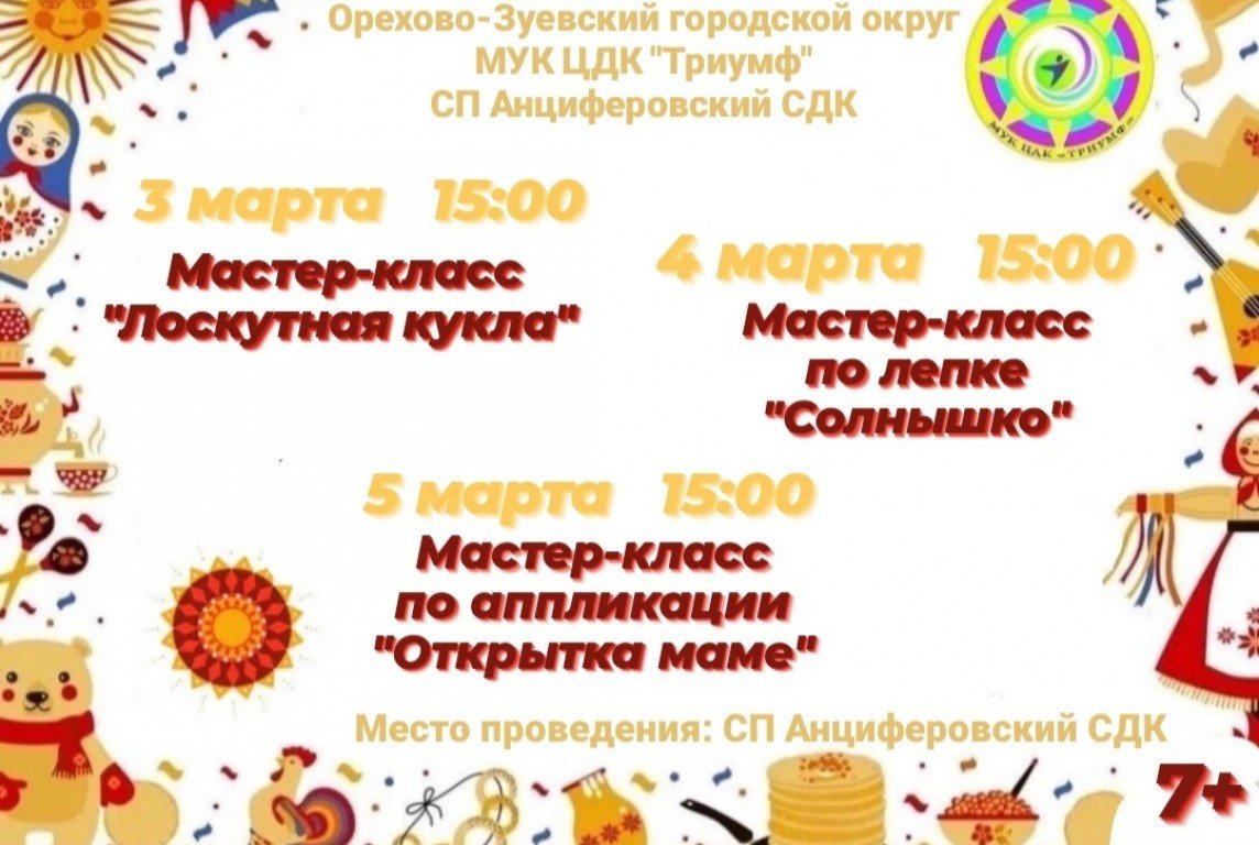 Мастер-классы 03.03.2022-05.03.2022 СП Анциферовский СДК